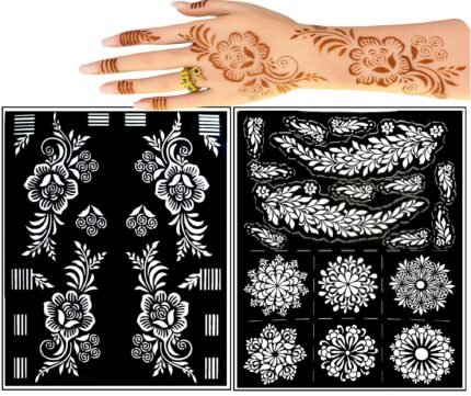 Made with skin-safe, flexible material, these stencils are reusable and easy to apply, making them perfect for both beginners and professionals. Whether you’re preparing for a wedding, Eid, party, or festival, these floral patterns add charm and grace to your look.